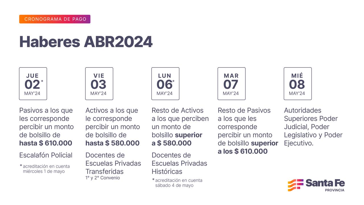 Los estatales de la Provincia lo percibirán desde el jueves 2. Personal policial y pasivos que cobren hasta $ 610.000 podrán disponer de sus haberes desde este miércoles 1 de mayo.
